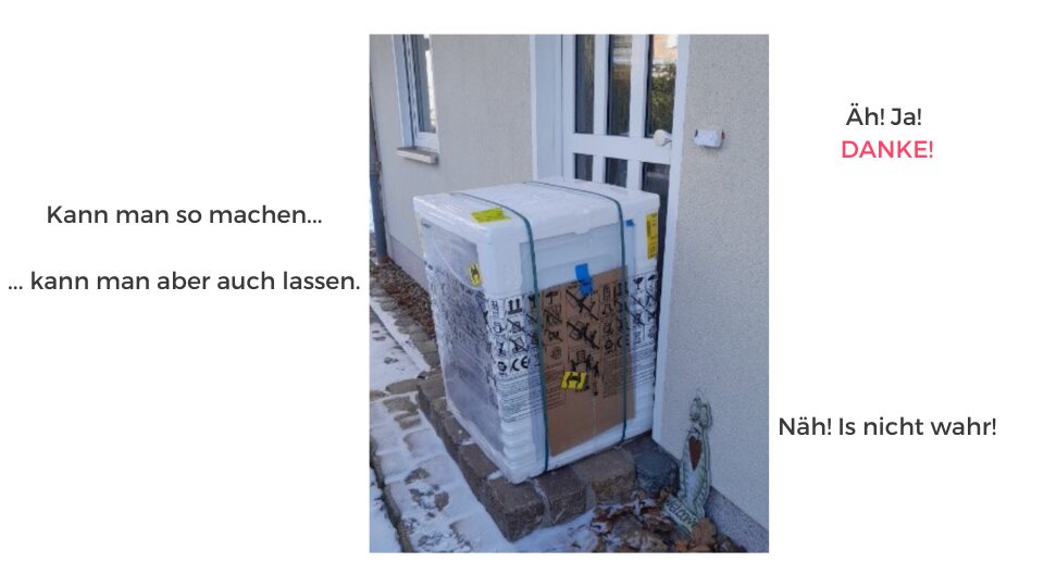 Das Altgerät stand natürlich noch unbewegt im Hauswirtschaftsraum und wir mit dem neuen 50-Kilo-Gerät wie „der Ochs vor dem Berg“.